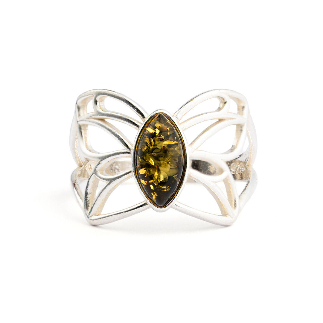 Anello in Ambra Verde con Fascia Trafitta a Farfalla