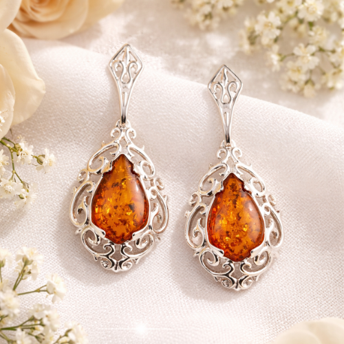Conservali lontano da profumi, creme e fonti di calore, preferibilmente in una custodia morbida, per preservare la lucentezza dell’ambra e la brillantezza dell’argento nel tempo.
