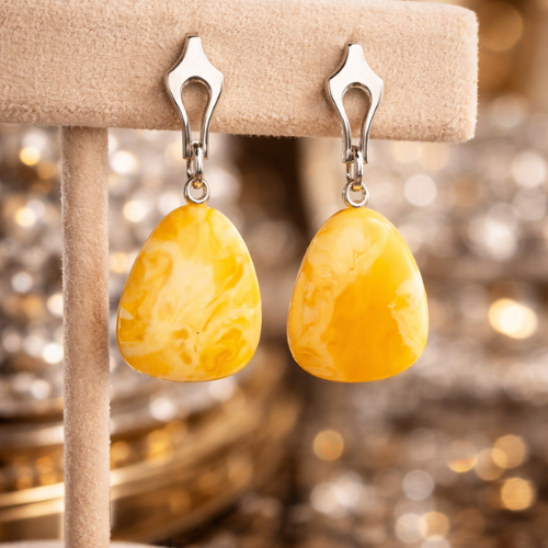 Orecchini Pendenti in Ambra Latte e Argento